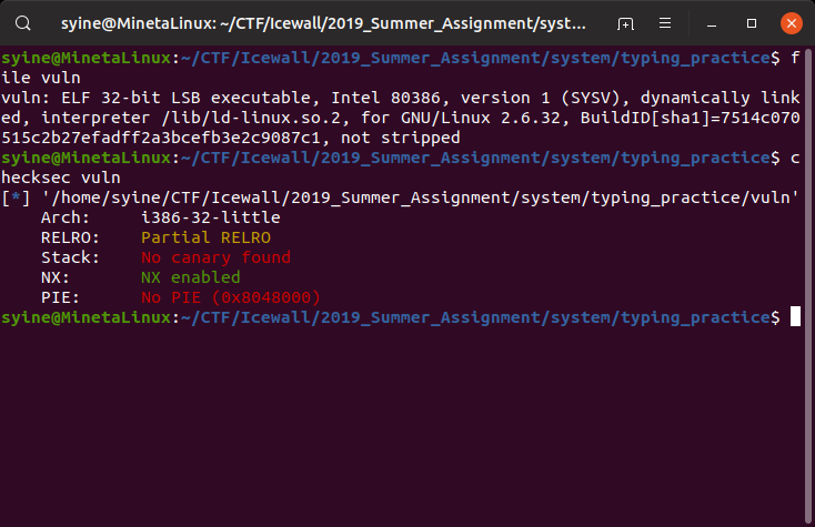 32bit ELF 바이너리에 NX만 걸려있다.