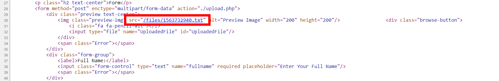 입력 필드가 3개 있고 파일을 업로드할 수 있는 input이 있다. 아무 파일이나 업로드하고 다시 웹 소스를 보면,
